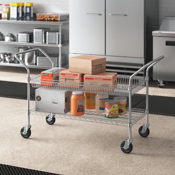 24" x 41 3/4" Two Shelf Chrome Utility Cart with U-Shaped Handle and Woo...