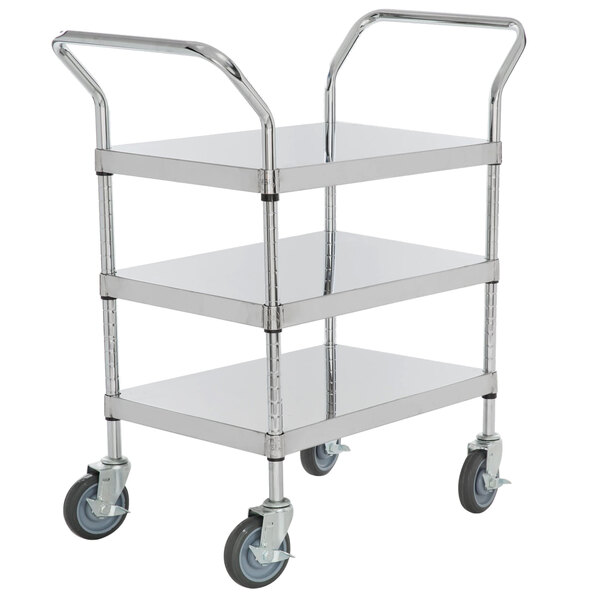 24" x 29 3/4" Three Shelf Chrome Utility Cart with U-Shaped Handle and W...