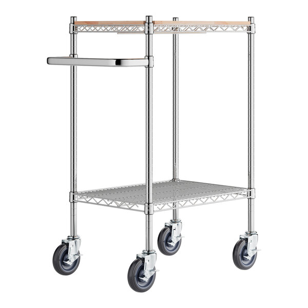 24" x 29 3/4" Two Shelf Chrome Utility Cart with U-Shaped Handle and Woo...
