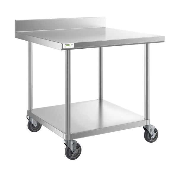 30" x 30" 18-Gauge 304 Stainless Steel Commercial Work Table with 4" Bac...