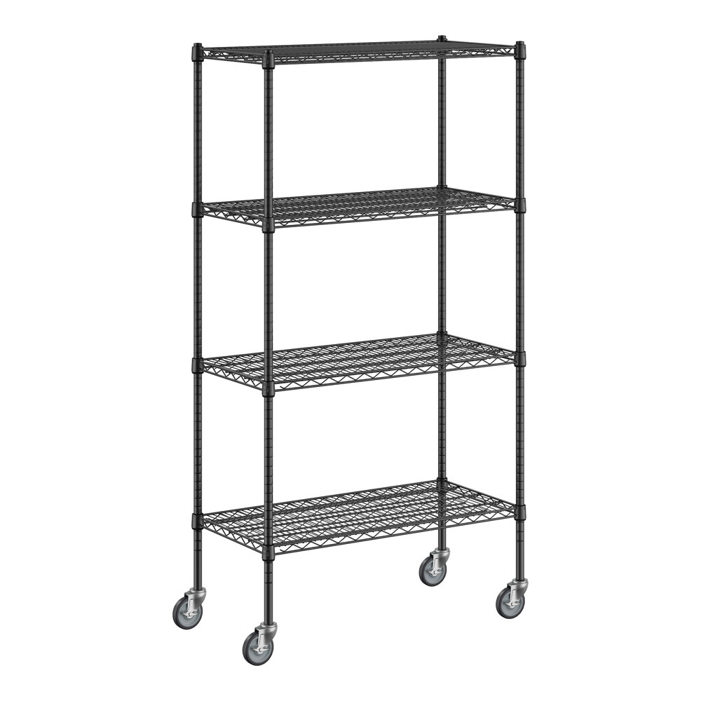 Keep your storage area organized with the Regency 18" wide NSF black epoxy 4-shelf starter kit.