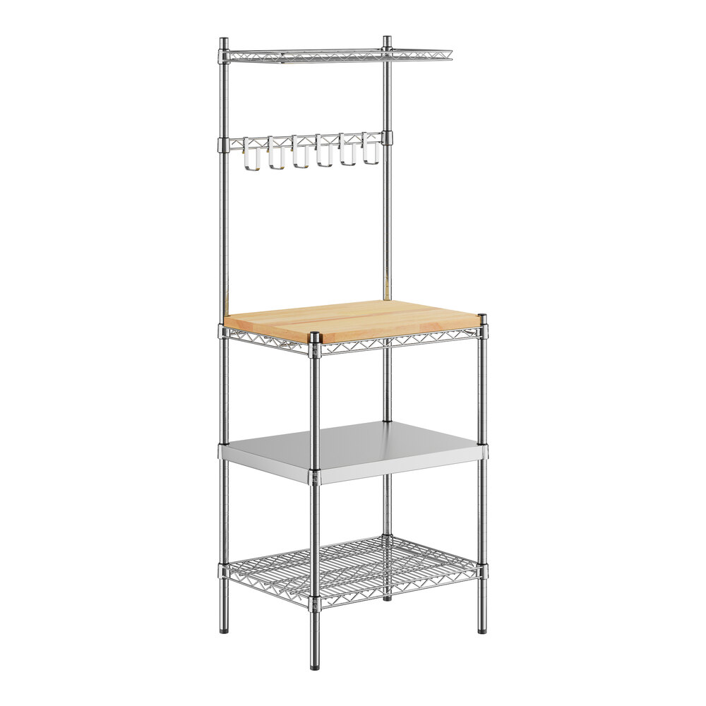 This Regency baker's rack does not only make a great storage solution, but also makes a versatile work station, with (1) 18" deep hardwood cutting board insert, making it ideal for a variety of tasks, including chopping vegetables and fruits, prepping batters, and providing your staff with additional workspace.