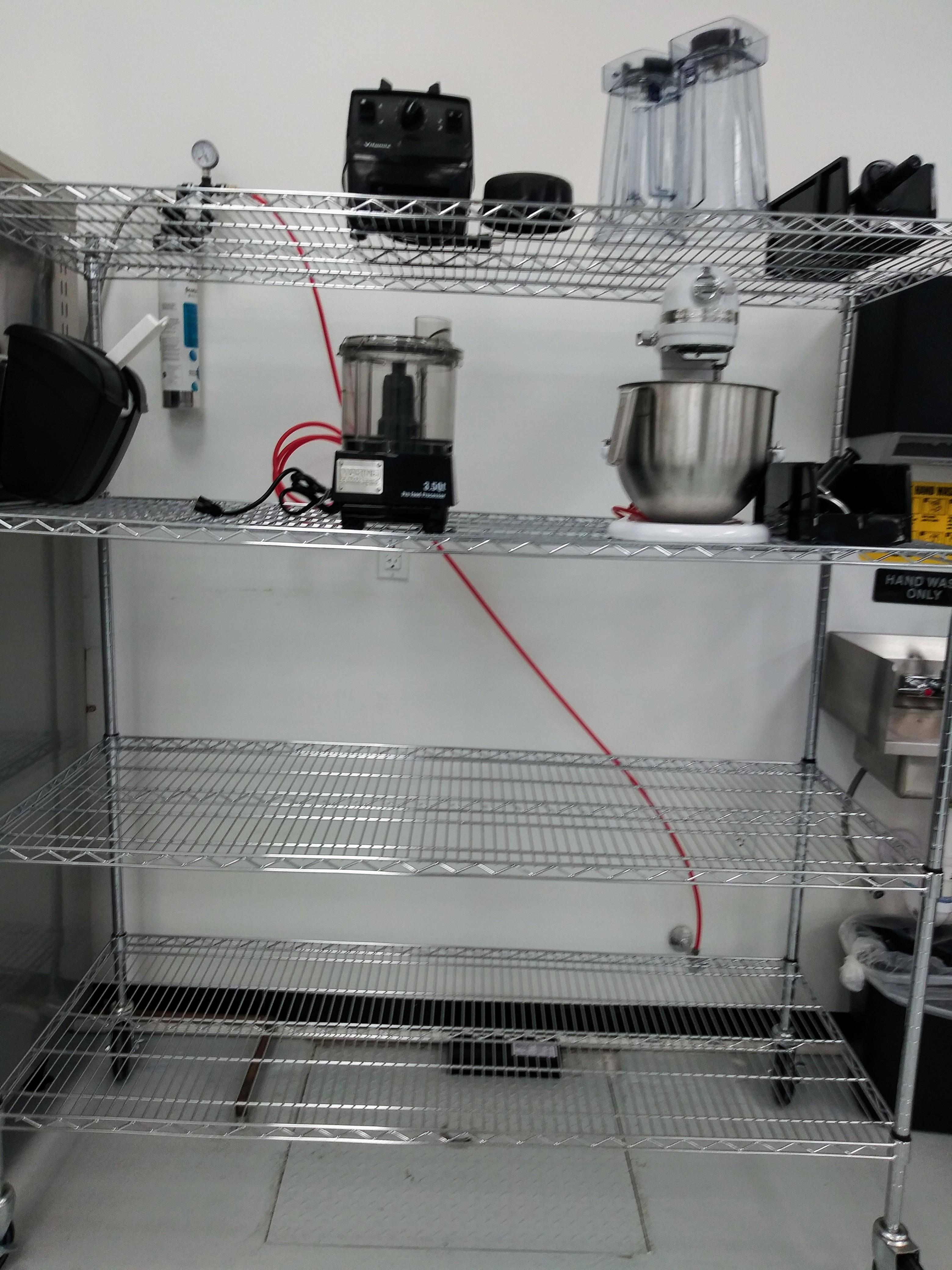Each shelf features a wire construction, which allows for proper airflow around the stored supplies, products, or ingredients, and each shelf accommodates an ample amount of evenly distributed weight. For your convenience, the shelves are also adjustable and can be moved higher or lower along the posts.