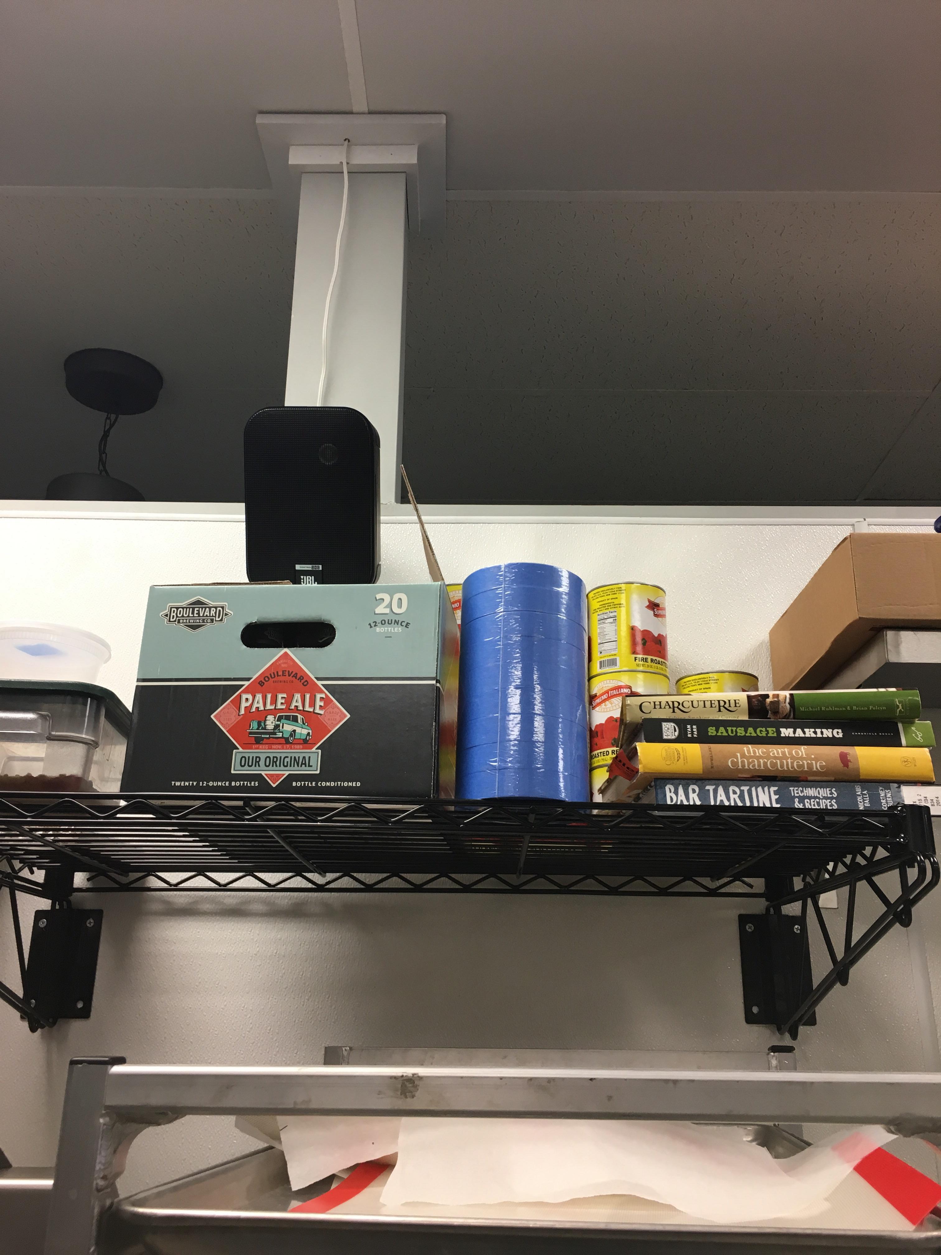 This shelf’s ribs run from front to back, rather than left to right, for easy loading and unloading of canned goods and other items.