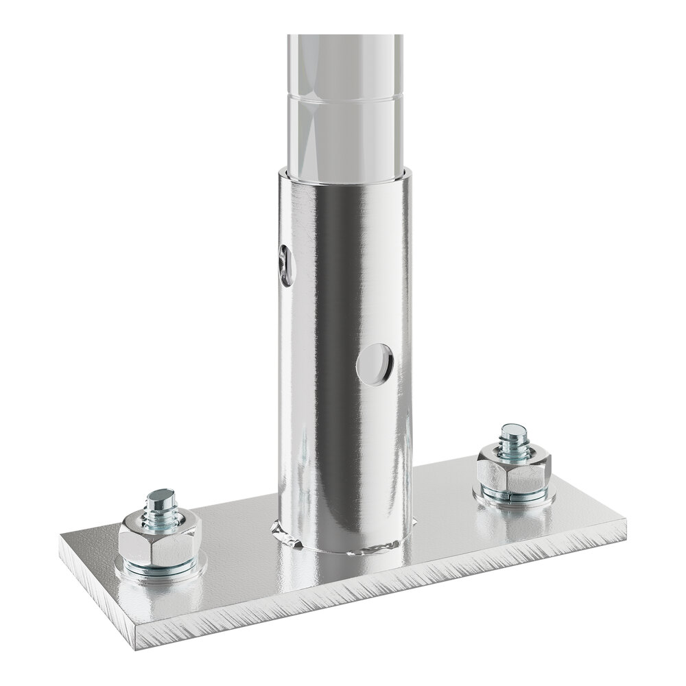 Easily anchor your posts to the floor with the Regency chrome post foot plate. This sleek, chrome-plated steel foot plate is designed for use with your existing Regency stand-alone shelving units or end posts. It is a great way to add stability to your shelving units, creating a sturdy base in the event of sudden force or a natural disaster. Mounting hardware for this part is sold separately.