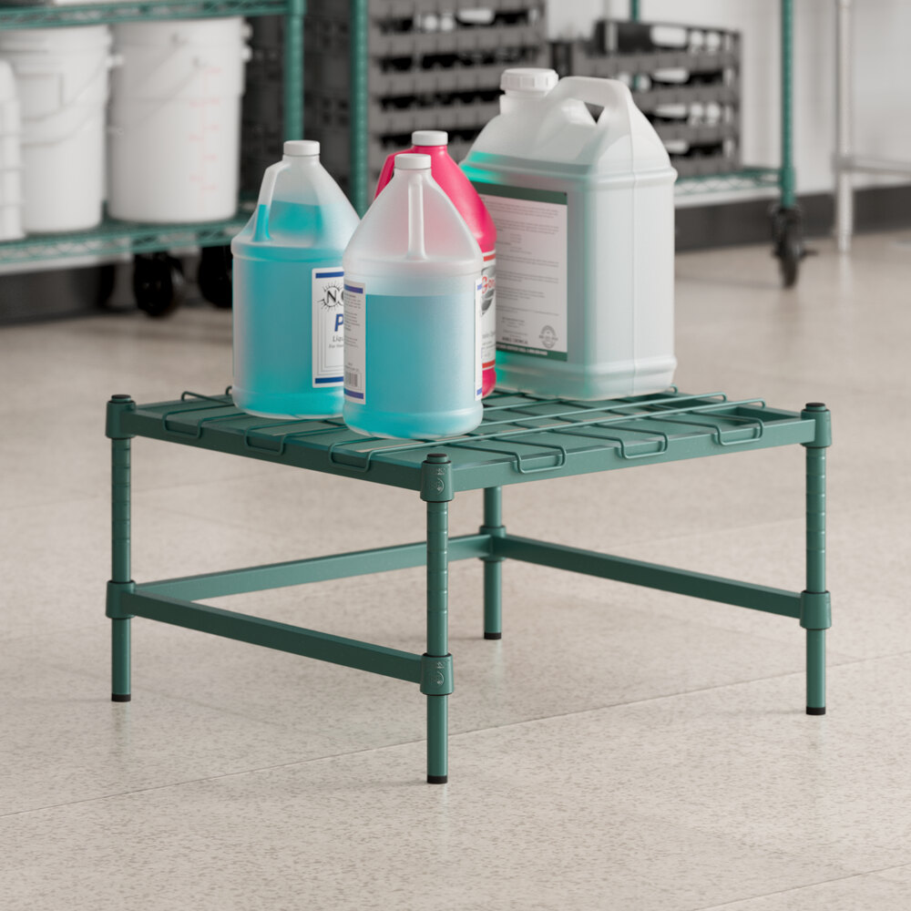 Regency green epoxy wire shelves offer versatile and convenient storage for your establishment.