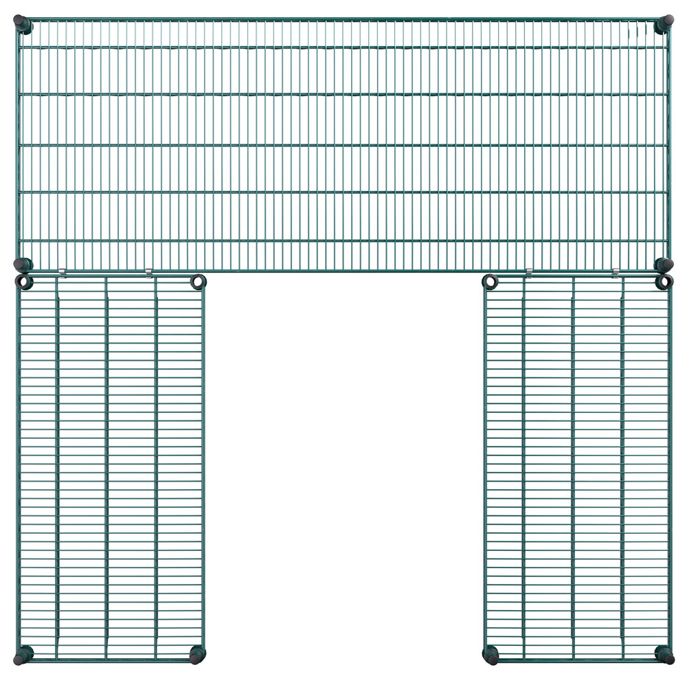 This Regency walk-in shelving kit is a great way to quickly and easily outfit a larger space with shelving, such as a 6' x 6' walk-in unit. A durable, green epoxy coating over the posts and shelves gives your shelving system the durability needed to stand up to frequent loading and unloading, while also providing the corrosion resistance that's essential inside a walk-in. The kit includes (8) 18" wide NSF green epoxy wire shelves, (4) 24" x 60" NSF green epoxy wire shelves, (8) 64" posts, and (16) S-hooks.