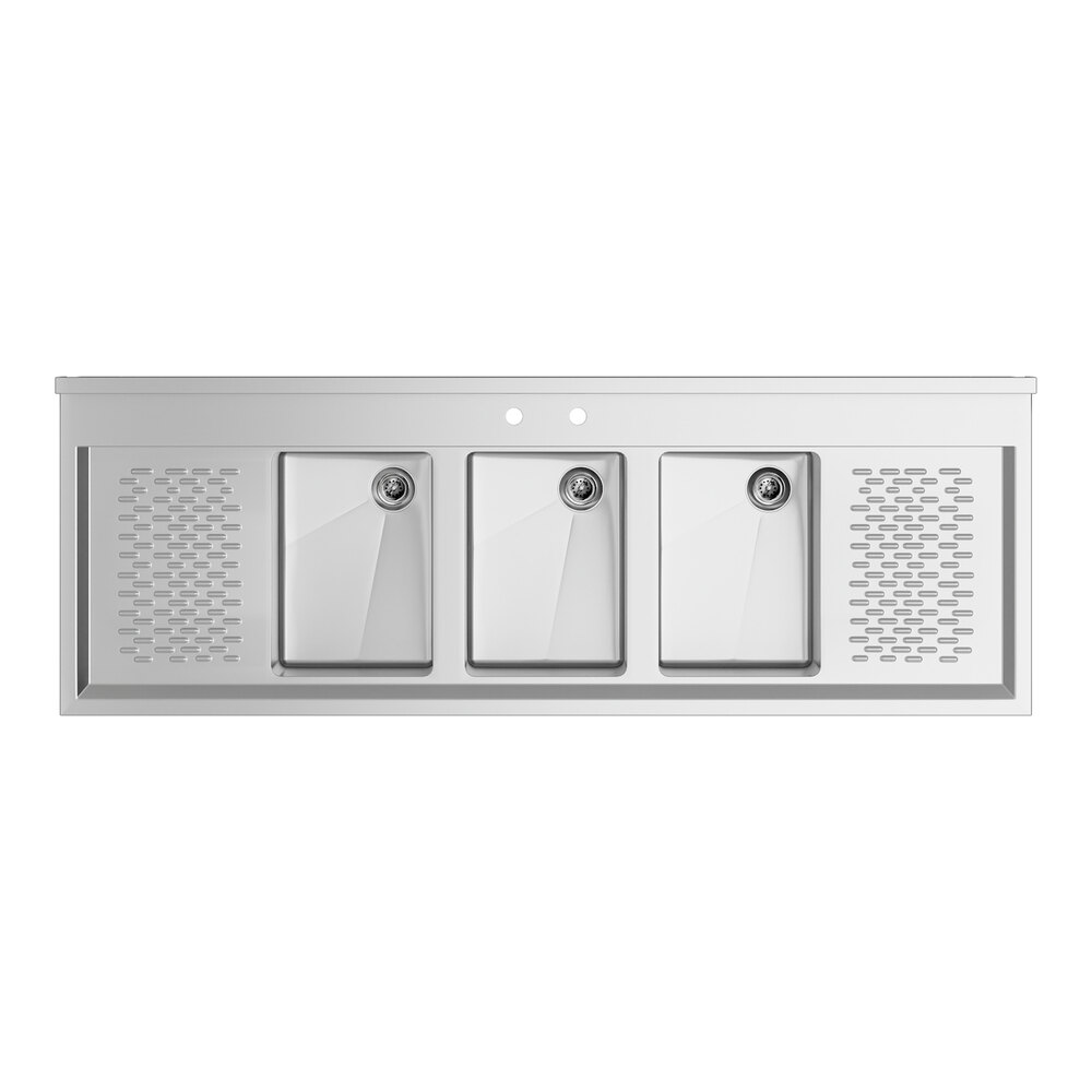 This sink has 2" drain baskets to collect excess waste that you don't want going down the drain. The sink's 1 1/2" IPS drainage connections safely drain waste water during use.