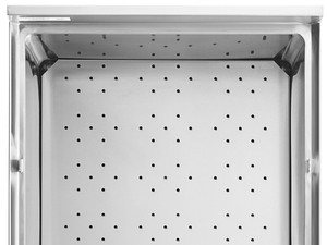 Designed for exceptional durability and long-lasting use at your restaurant or bar, this standard-duty beer box also has a 3" backsplash to protect the wall and help maintain a sleek, professional appearance. This unit features a mostly stainless steel construction, including an 18 gauge, corrosion-resistant type 304 stainless steel bowl, top, bottom, backsplash, and apron. It has a 16 gauge, corrosion-resistant type 304 stainless steel perforated false bottom, galvanized steel legs and sockets with U-shape leg bracing, and plastic bullet feet.