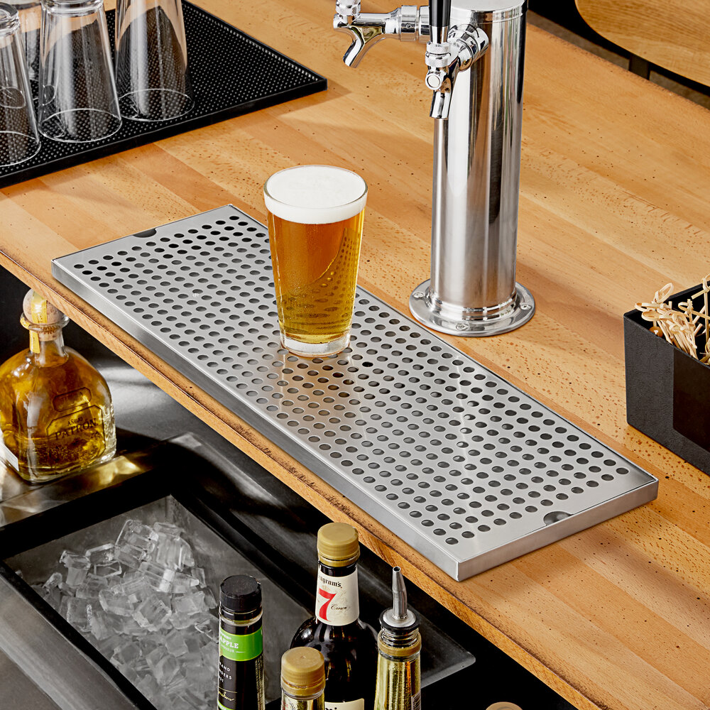 Keep your countertops and floors clean in your bar or club with the help of this Regency beer drip tray. This product provides the perfect spot for bartenders to set drinks before serving to catch any overflow and prevent drips and spills before they reach the surrounding surfaces. This ensures the utmost safety by minimizing the risk of your bartenders or customers slipping on the wet floor. This drip tray is designed to be mounted underneath beer taps and on countertops, making a secure and stable platform for filled glasses.