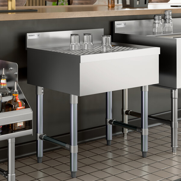 Assure that your wet dishes have a place to drain and dry with this Regency stainless steel underbar drainboard!