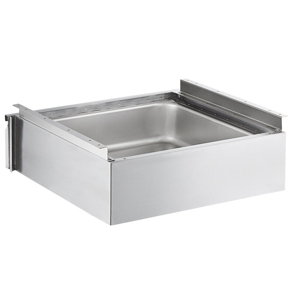 Keep your kitchen organized by mounting this Regency Spec Line Tables and Sinks 20" x 20" x 5" galvanized steel drawer to the hat channels under your work table. Each drawer features an easy-to-clean stainless steel front and utilizes self-closing ball-bearing slides. This upgraded feature makes the drawer quieter and easier to close, while also preventing slamming that can lead to staff injury or damage to the slide components. The drawer pan is made of 22 gauge, type 304 stainless steel. They also have built-in locks, allowing you to secure the drawer's contents with ease for added security.