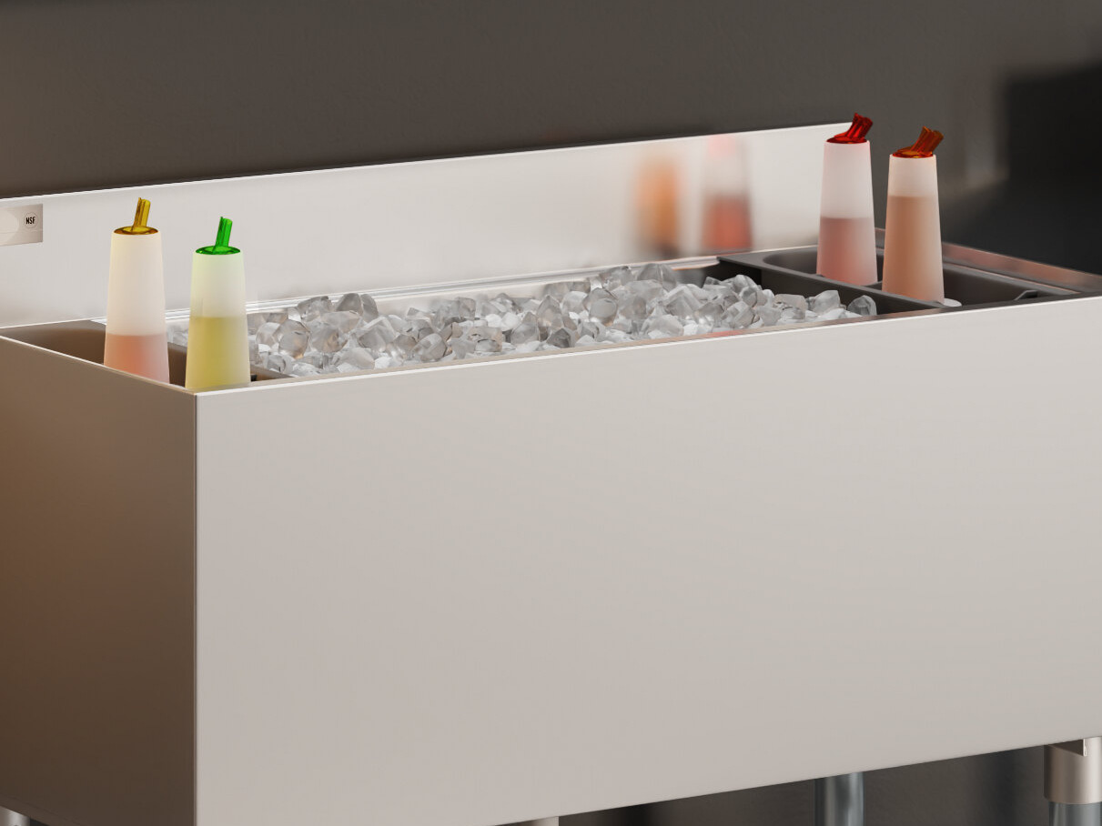 Two plastic bottle holders help keep your mixers nice and cold throughout your busy shifts, and the dividers are removable to allow for various configurations.