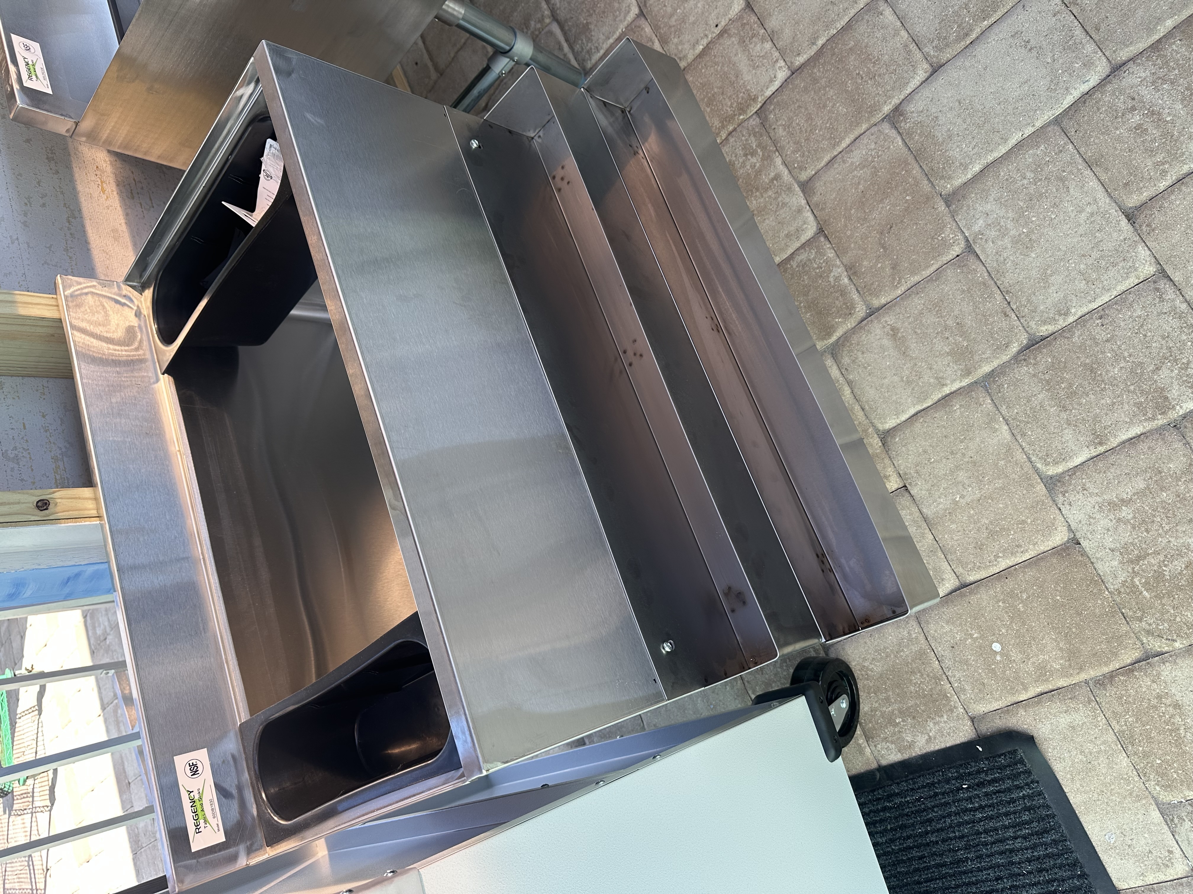 This 119 lb. Regency ice bin gives you ice right where you need it, when you need it. The durable stainless steel bin is easy to keep clean so it's always sanitary and looking great. Additionally, you get two bottle holders to keep your mixers chilled and easily accessible at all times. Designed to exceed your needs, this unit offers unbeatable value!