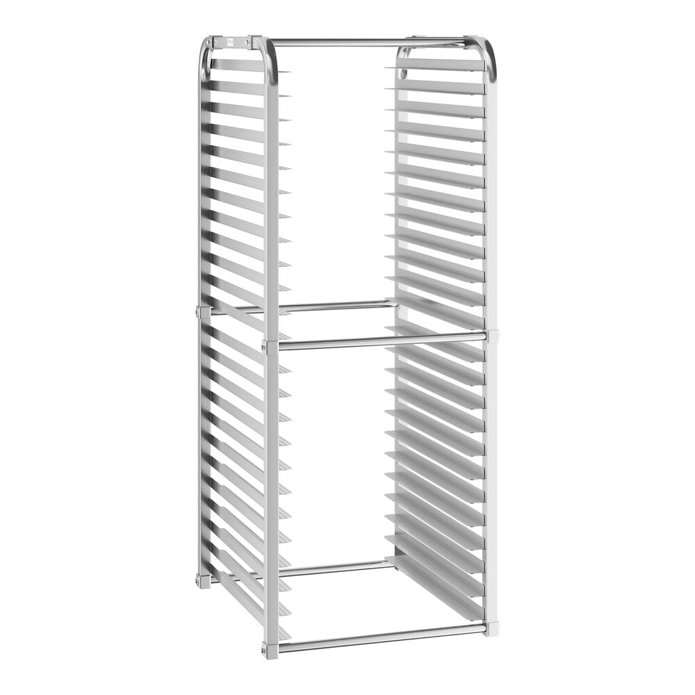 This Regency 24 pan end load sheet / bun pan rack makes it easy to cool or freeze sheet pans full of product at your commercial facility.