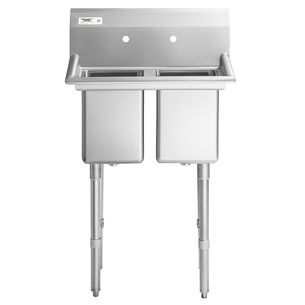 Outfit your facility with a long-lasting sink with this Regency 27" stainless steel two compartment sink without drainboards.