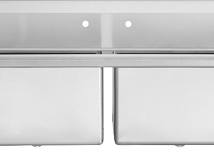 Two 24" x 24" x 14" sinks sit 2" apart to provide an abundance of work space for a variety of kitchen tasks. Two members of the staff are able to comfortably work simultaneously to fulfill kitchen duties like food prep and dishwashing. Plus, the continuous, high backsplash on the back of the compartments will limit the amount of liquids that escape the sinks.