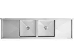 It's constructed from high-quality, 16-gauge type 304 stainless steel, making it more corrosion-resistant and durable than other sinks made from thinner, 18-gauge type 430 stainless steel. This sink features 2 sturdy, 24" drainboards so you can easily wash and dry dishes and utensils in one convenient location. It's dipped a minimum of 1/4" to facilitate better drainage, and the welded construction contributes to the long-lasting use and overall strength of this sink / drainboard combo.