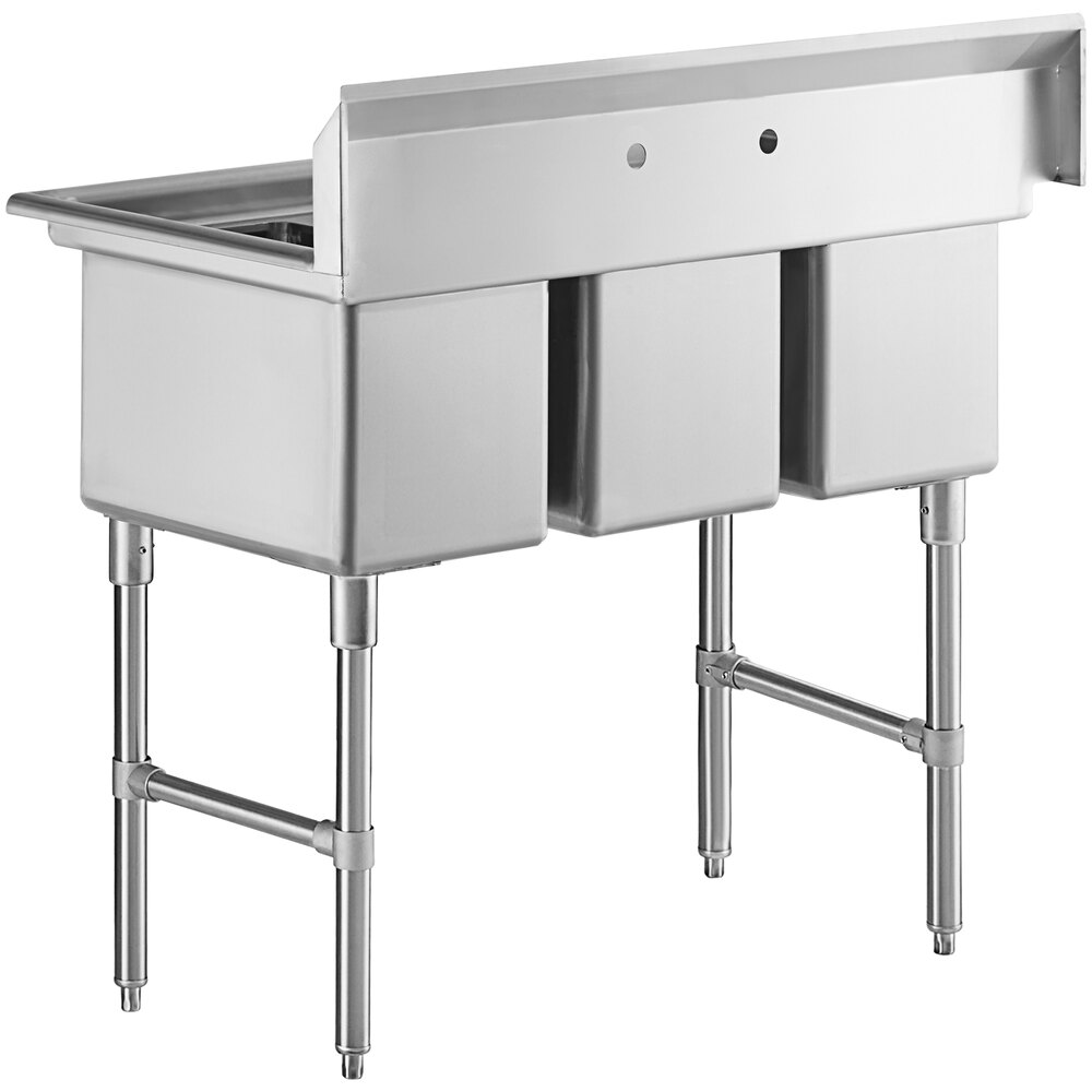 Ideal for setting up a washing, rinsing, and sanitizing station, this Regency 45" three compartment commercial sink is the perfect addition to your establishment.