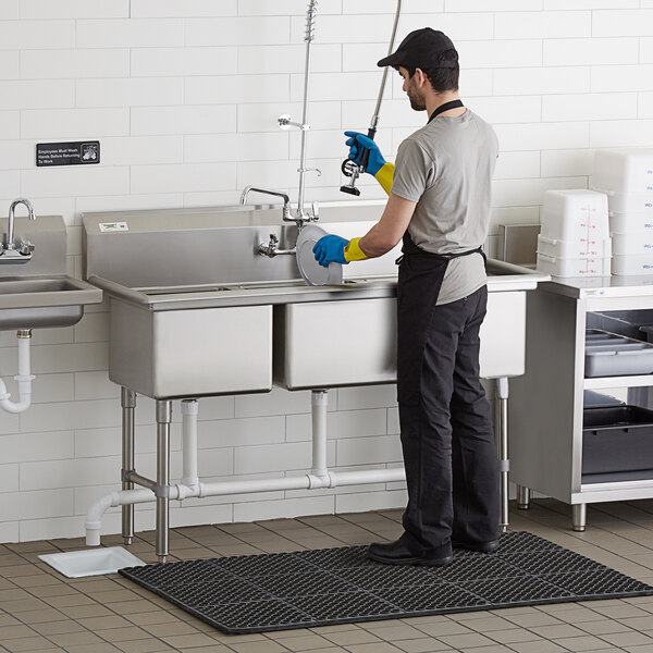 Outfit your facility with a long-lasting sink with this Regency 60" stainless steel three compartment sink without drainboards.