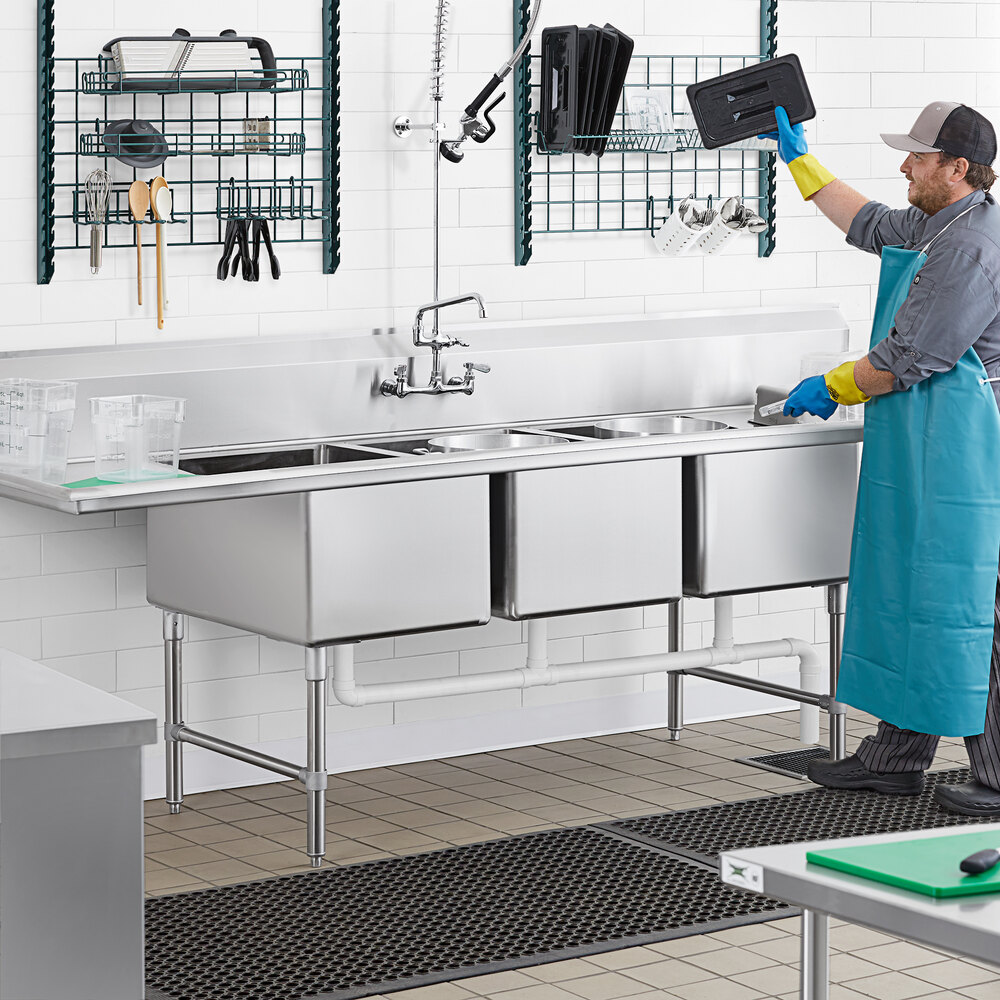 Ideal for setting up a washing, rinsing, and sanitizing station, this Regency 112" 3 compartment sink with 2 drainboards is the perfect addition.