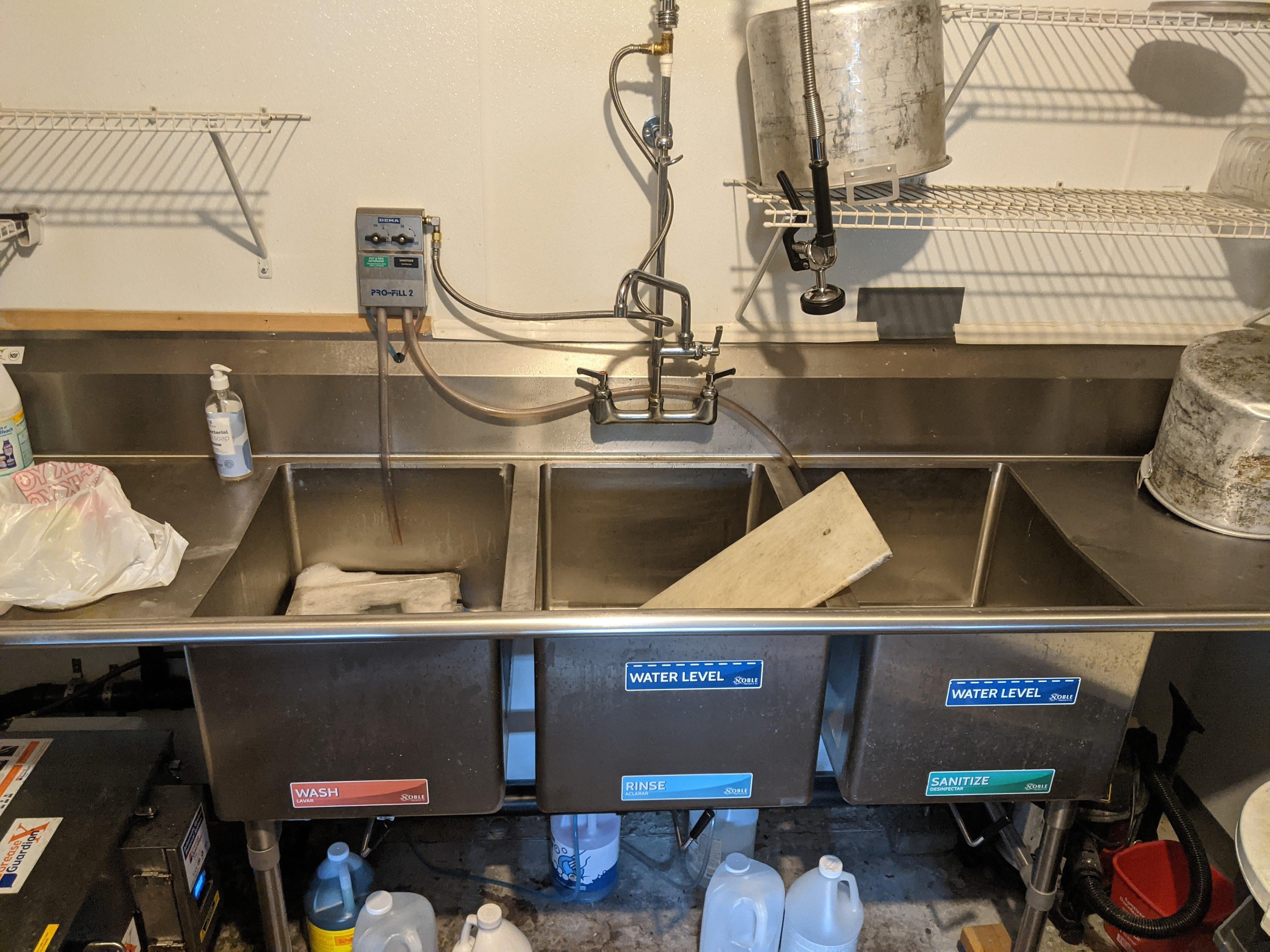 For easy, organized washing, rinsing, and sanitizing, choose this Regency 106" stainless steel 3 compartment sink!