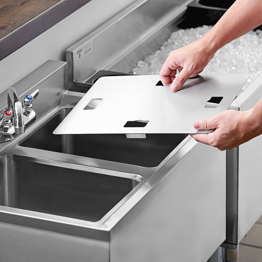 This Regency sink bowl cover easily slides over top of your sink bowl to provide added light-duty work space! It's compatible with 10" x 14" Regency sink bowls and works as a simple solution for logistical challenges. This cover has holes so that you can easily grasp and lift it away when needed. As an added benefit, the 18 gauge stainless steel construction is durable and easy to clean.