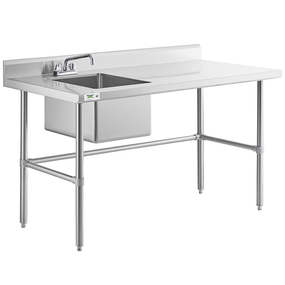Combining an easy-to-clean, 16 gauge type 304 stainless steel top with a 12" deep sink, this unit is designed to streamline your workflow for maximum efficiency and convenience. It is designed to allow you to easily rinse ingredients or wash your hands as you are completing other tasks on the table's work surface.