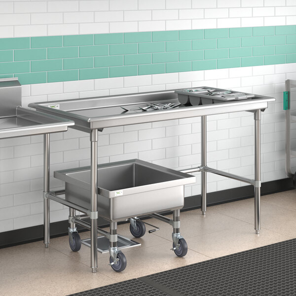 Add valuable sorting space to your kitchen while increasing dishwashing efficiency with this Regency 30" x 60" sorting table and mobile silverware soaking sink!