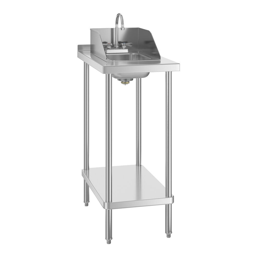 The work table's adjustable undershelf is made from stainless steel, offering excellent durability and a professional looking finish. Plus, it includes a faucet with 4" centers and a 2 GPM flow rate.