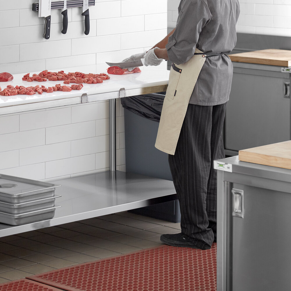 This poly top table features a 14-gauge type 304 stainless steel construction, which offers greater durability and corrosion resistance than type 430 stainless steel options, making it the ideal choice for your kitchen. It's perfect for a variety of tasks, making it extremely versatile. The stainless steel legs provide sturdy support, while the undershelf helps with organization and storage. Assembly is simple using the included hardware.