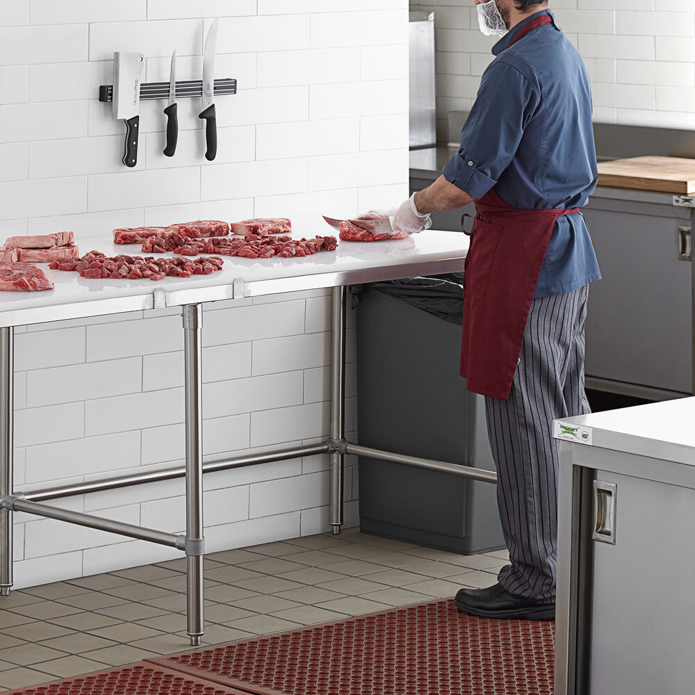Not only does this Regency commercial table feature durable 14-gauge type 304 stainless steel construction, it includes a 3/4" thick removable poly top that makes it ideal for slicing, dicing, and chopping without dulling your knives. This table is more than capable of handling your daily prep tasks like pressing burger patties, chopping vegetables, or working with dough. It's ideal for bakeries, grocery stores, bars, and much more! Replacement tops can be found in the accessories section of this page.