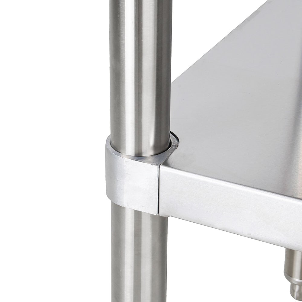 Featuring a backsplash and all-stainless steel construction, this work table is a great addition to your restaurant, cafe, or bakery. Perfect for mixing ingredients or chopping fruits and vegetables, you can make the most out of limited counter space by adding this versatile work table to your establishment!