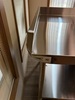 This table features stainless steel legs and adjustable stainless steel feet. It has a spacious undershelf for convenient storage of plates, utensils, and bowls. For your convenience, this table fits into corners to maximize space in your crowded kitchen.