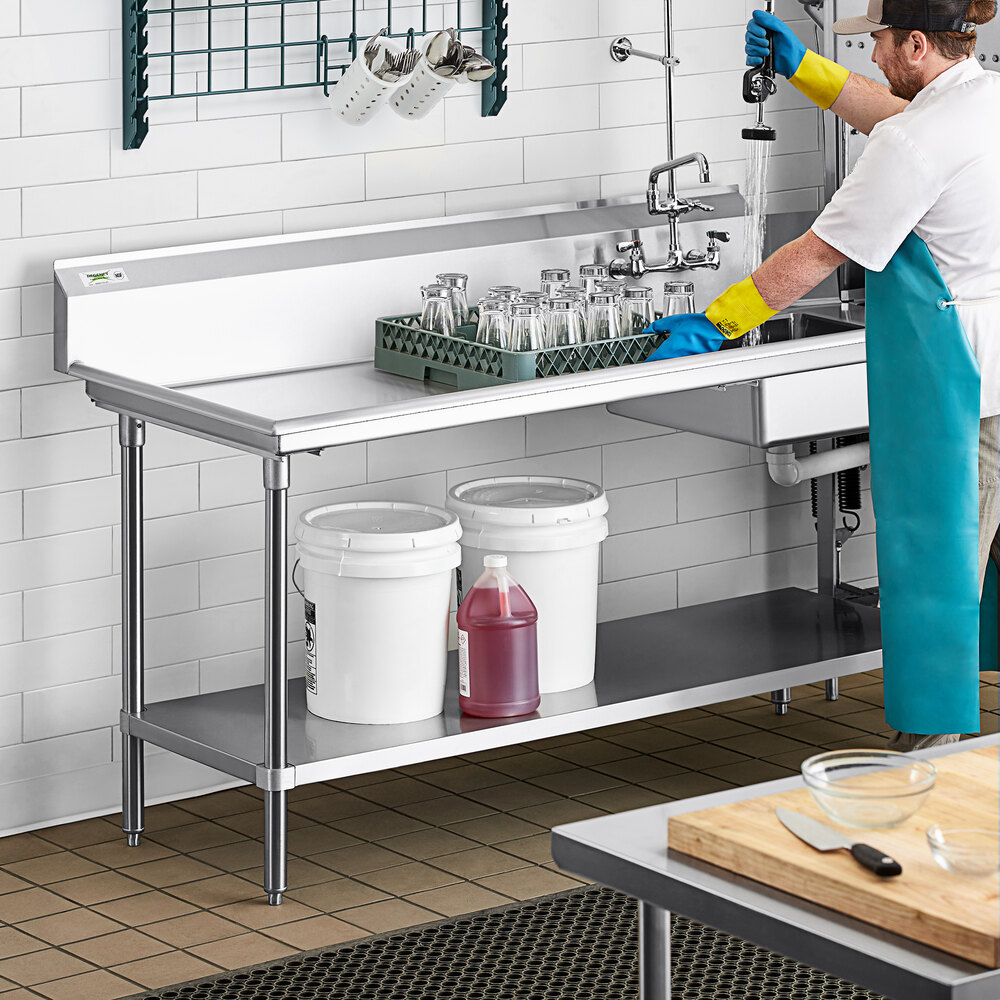 Use this Regency 66" x 21" stainless steel dish table undershelf to easily add quick and convenient storage space below your dish tables. It's constructed of durable 18 gauge type 304 stainless steel, and it features 10" high legs on one side. This undershelf is designed to fit 6' dish tables.