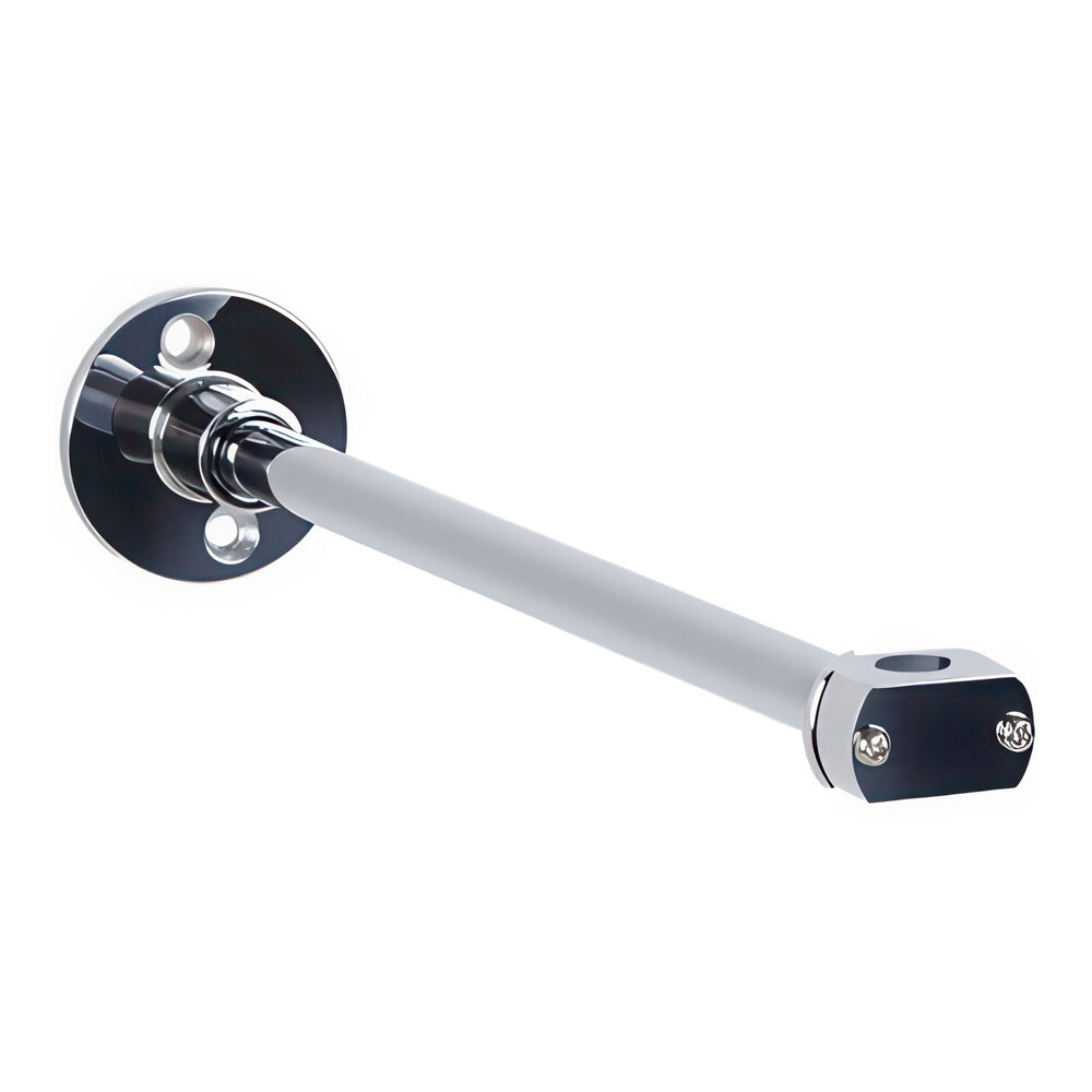 This Regency 6" wall bracket assembly is perfect for use as a replacement on your pre-rinse faucet. The wall bracket is a vital part of your faucet assembly, providing a sturdy support system for the faucet riser and bracing it against your wall. This bracket measures 6" long, and is designed to fit 3/8" NPS risers on Regency pre-rinse faucets.