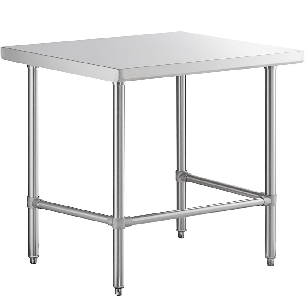 This work table features a 16 gauge type 304 stainless steel top, which offers greater durability and corrosion resistance than type 430 stainless steel options, making it the ideal choice for your kitchen. It's perfect for a variety of tasks, making it extremely versatile. The open base design helps with easy cleaning, and assembly is simple using the included hardware.