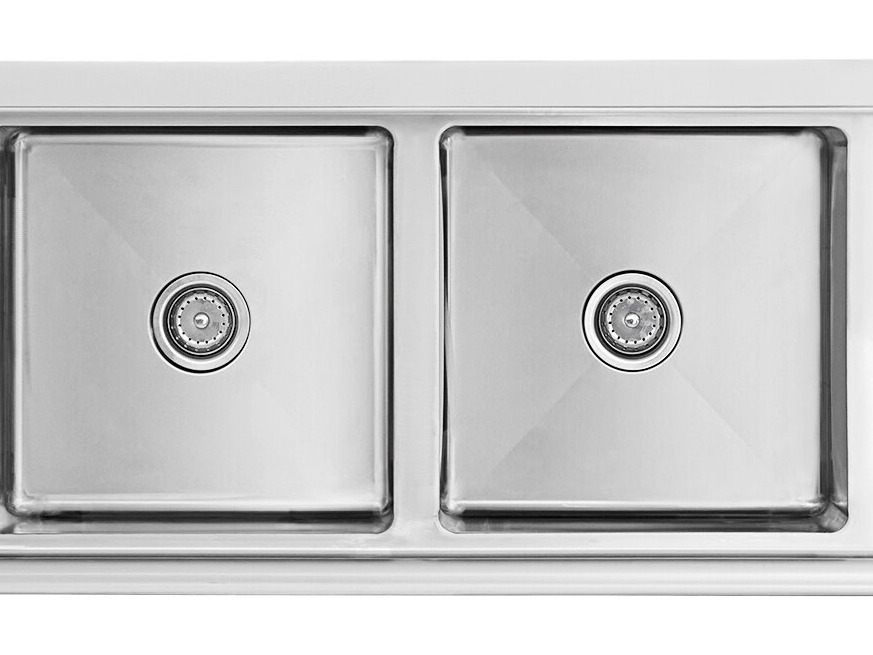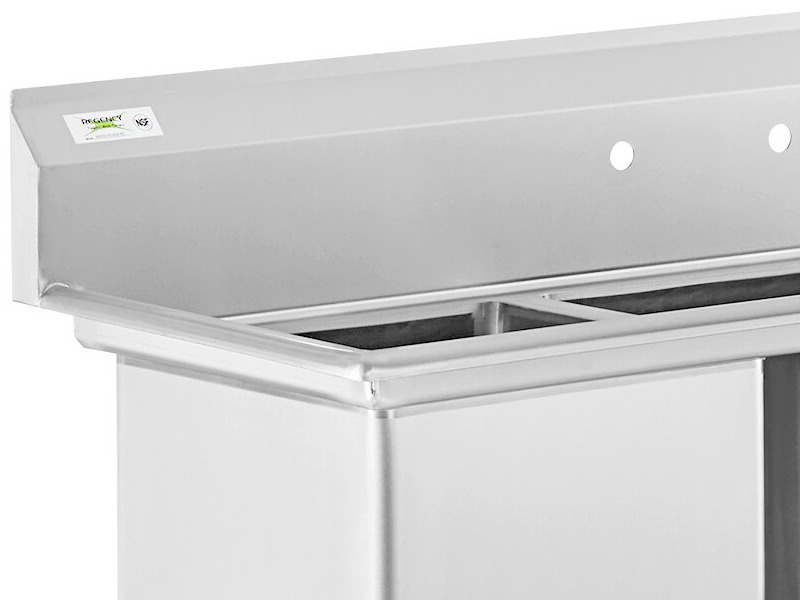 The 14" deep bowls are die-stamped to a minimum of 1/4" to ensure proper drainage. For easy cleaning, each compartment has rounded corners so you can rinse and wipe down the sink.
