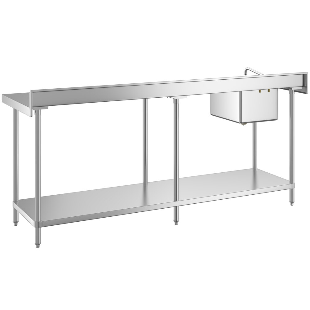 This Regency work table with sink features sink type 304 stainless construction, which offers greater durability and corrosion resistance than type 430 stainless steel options, making it the ideal choice for your kitchen! With its integrated 16" x 20" sink, this unit allows you to easily rinse ingredients or wash your hands as you are completing other tasks on the table's large work surface. Plus, its undershelf offers a convenient storage solution, so you can keep everything you need close at hand for a streamlined operation.