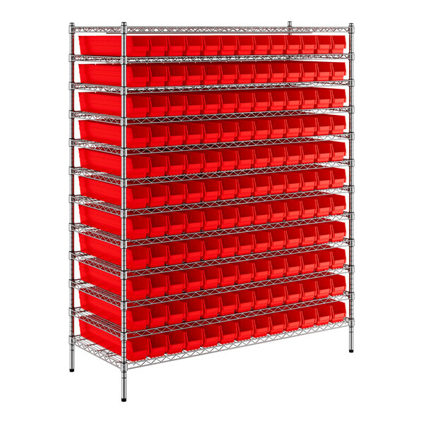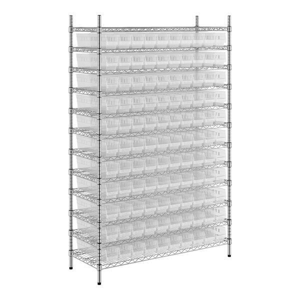 12" x 60" x 74" Wire Shelving Unit with 118 Clear Bins
