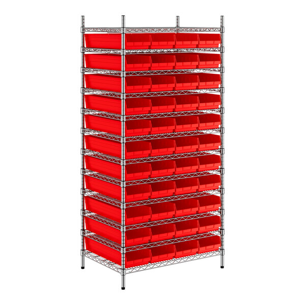 12" x 36" x 74" Wire Shelving Unit with 44 Black Bins