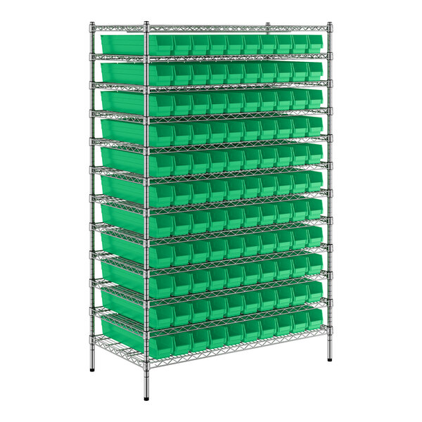 24" x 36" x 74" Wire Shelving Unit with 44 Green Bins