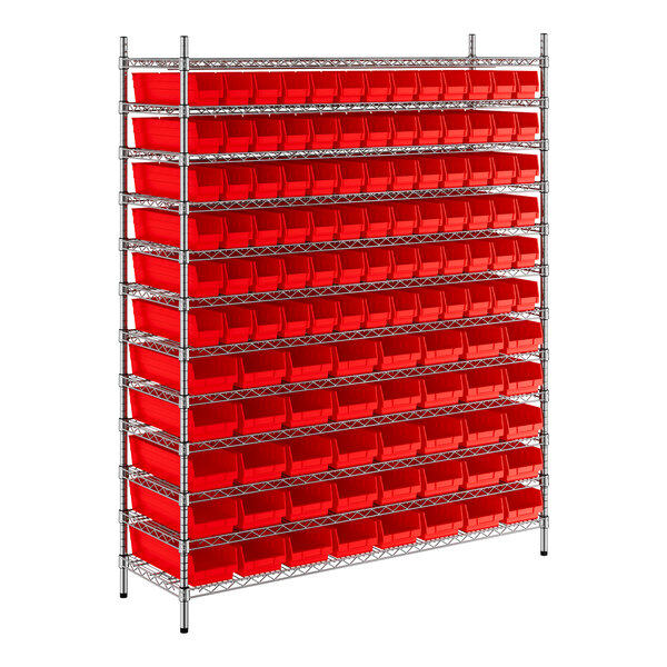 12" x 60" x 74" Wire Shelving Unit with 88 Clear Bins