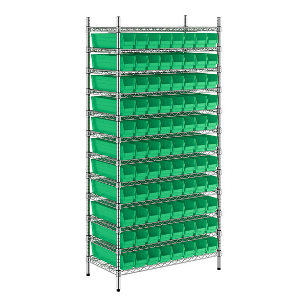 18" x 36" x 74" Wire Shelving Unit with 44 Green Bins