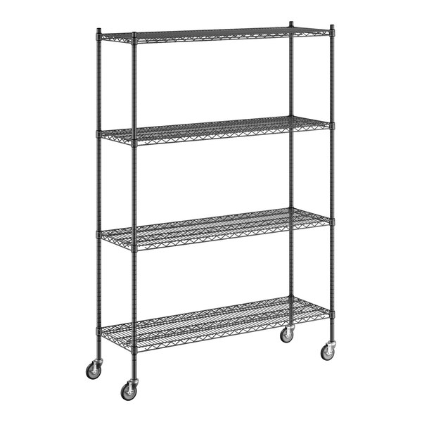 18" x 54" x 80" NSF Black Epoxy Mobile Wire Shelving Starter Kit with 4 ...