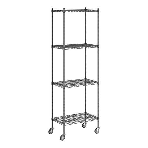 24" x 24" x 80" NSF Black Epoxy Mobile Wire Shelving Starter Kit with 4 ...
