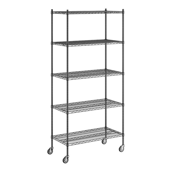 18" x 24" x 92" NSF Black Epoxy Mobile Wire Shelving Starter Kit with 5 ...
