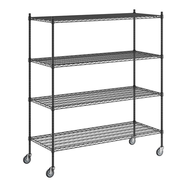 18" x 54" x 80" NSF Black Epoxy Mobile Wire Shelving Starter Kit with 4 ...