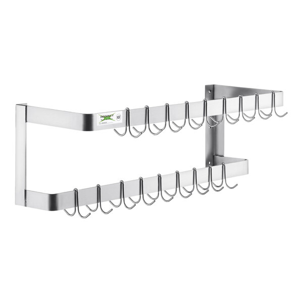 24" Stainless Steel Wall Mounted Single Line Pot Rack with 2 Double Pron...