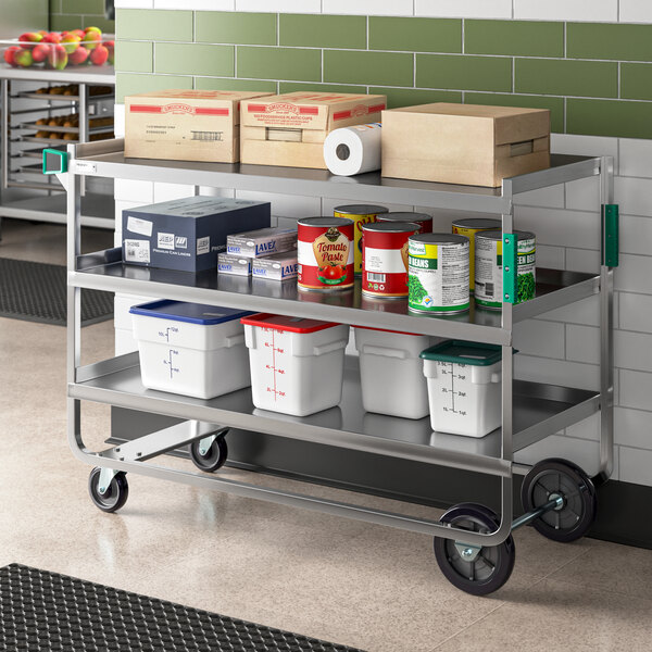 16" x 27" Three Shelf 20 Gauge 430 Stainless Steel Utility Cart - Fully ...